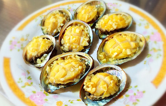 主料:鮑魚8只、生姜1塊、大蒜1頭 調料:澳洲因子、鮑汁適量、香油適量、糖適量、醬油適量 做法: 1、將鮑魚清洗干凈后改刀,切成十字花,放入盤中備用,同時可在鮑魚周圍放上一些姜片以去除鮑魚的腥味。 2、將蒜切成蒜末,然后加入澳洲鮑因子、鮑汁3勺,香油2勺,醬油1勺,糖半勺,攪拌均勻。 3、將調好的醬汁兒用小勺子均勻地澆在鮑魚上,然后上蒸鍋蒸。 4、待水沸騰后蒸3分鐘即可出鍋。