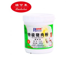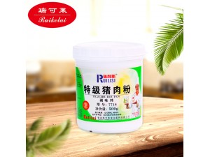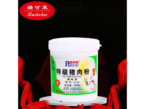 2、將豬肉依次加入鹽,特級豬肉粉,糖,叉燒醬,酒,生抽,老抽,蠔油,蒜末等材料。
