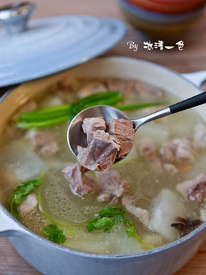 食材:羊腿1500克(我用了一半的肉)、冬瓜300克、羊肉浸膏、蔥姜、大料、陳皮等適量