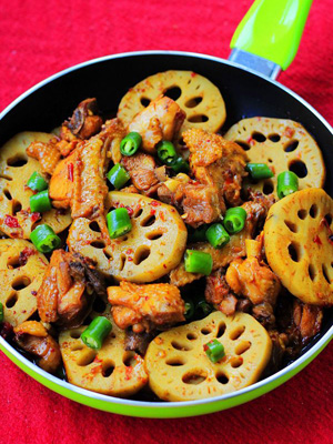 6-8、加蓮藕片、鹽翻炒2分鐘,加青辣椒、白糖翻炒均勻,撒上蒜末、孜然粉拌均勻,用酒精爐或者電熱鍋煮著吃即可。