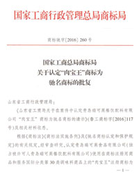2016年12月,青島瑞可萊餐飲配料有限公司旗下的“肉寶王”品牌榮膺為中國馳名商標。