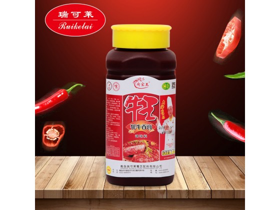 辣椒面20g、花椒面10g、料酒60g、菜籽油1500g,姜100g、蔥100g、炒芝麻、松醬油60g、 香油30g、 食用12g、牛肉湯750g、芝麻100g、五香粉2g、蔥粉1g、姜粉0.5g、F5045肉寶王5g、肉寶王牌牛王牦牛香膏10g、C7208辣椒精(油)3g、肉寶王火鍋雞精5g