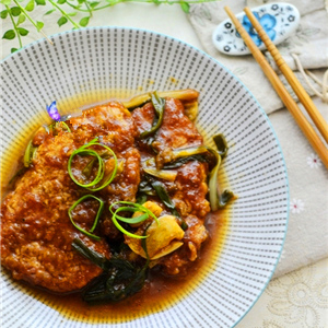 主料:1CM左右的里脊肉2塊、香蔥適量