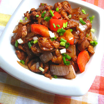 做法: 1、雞腿去骨,切小塊。 2、洋蔥、甜椒切小塊,姜蒜、豆豉切碎。 3、油溫5成人,放入姜蒜、豆豉慢慢炒香。 4、再放入雞肉鮮香膏、雞肉煸炒,冷凍雞腿肉水分大,多炒一會兒。 5、待到雞肉炒至收縮后,放入洋蔥翻炒。 6、根據自己的口味調入老抽和食鹽。 7、倒入甜椒,炒至斷生即可。 8、裝盤即可。